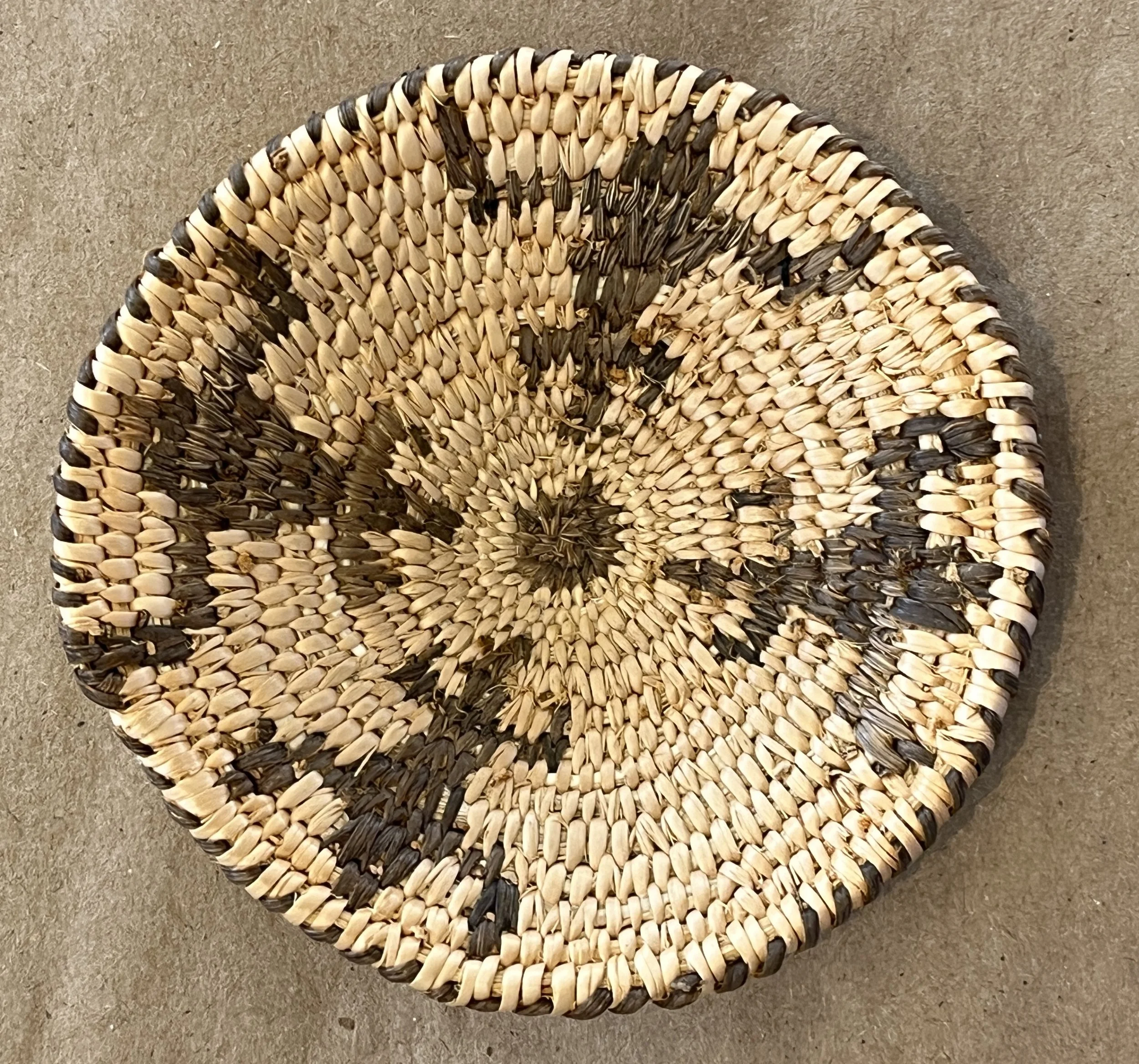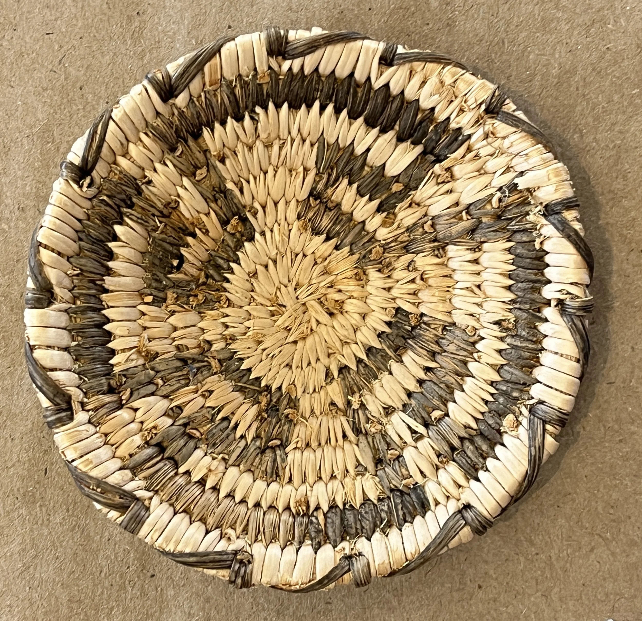 Seri baskets are woven of torote (limberbush/jatropha cuneata). The Seri live along the desert coast of the Sea of Cortez and call themselves Comcaac. Occasionally they use a red dye from the bark of the white ratany plant (Krameria grey - e’edho). Woven at the village of Desemboque.