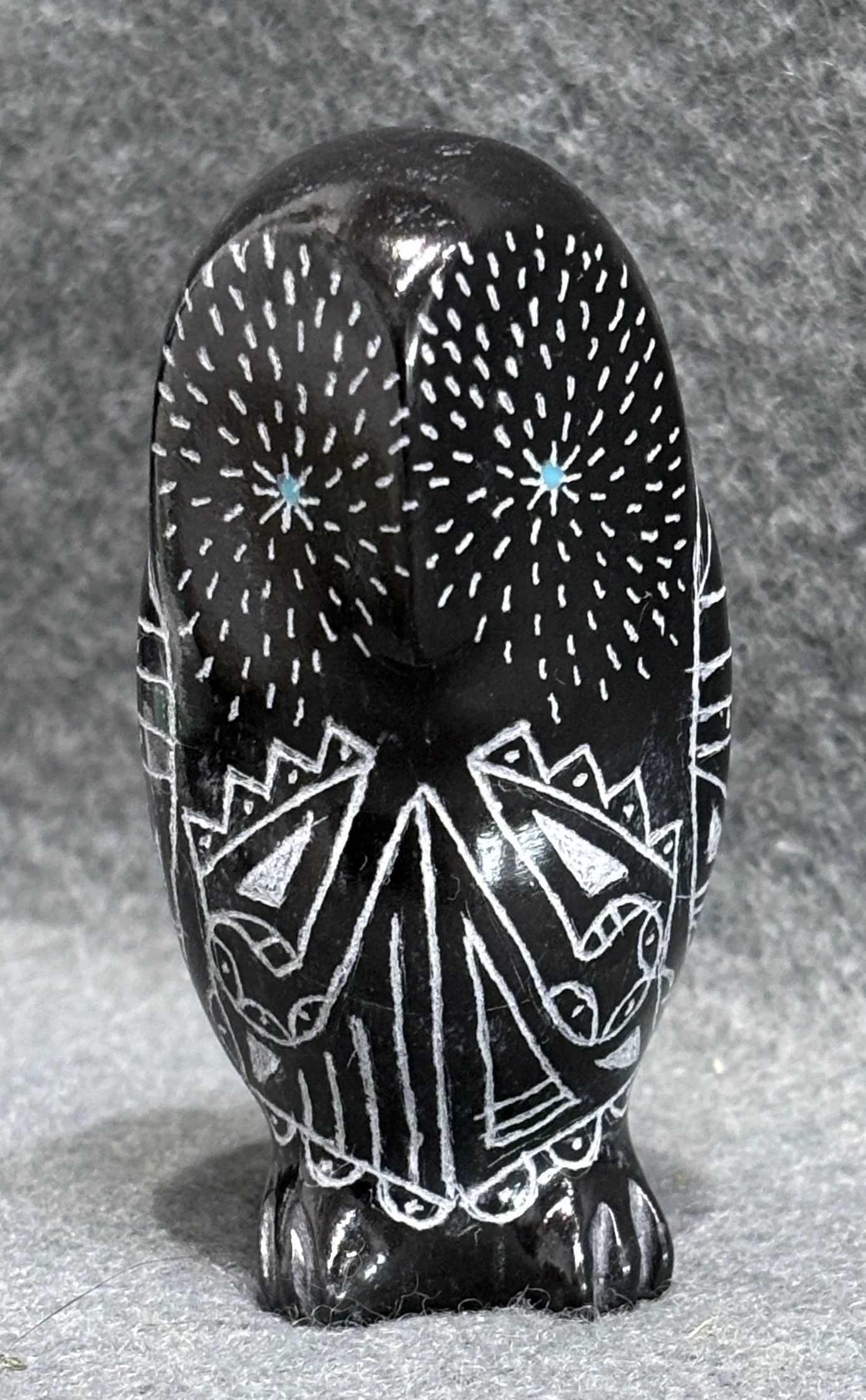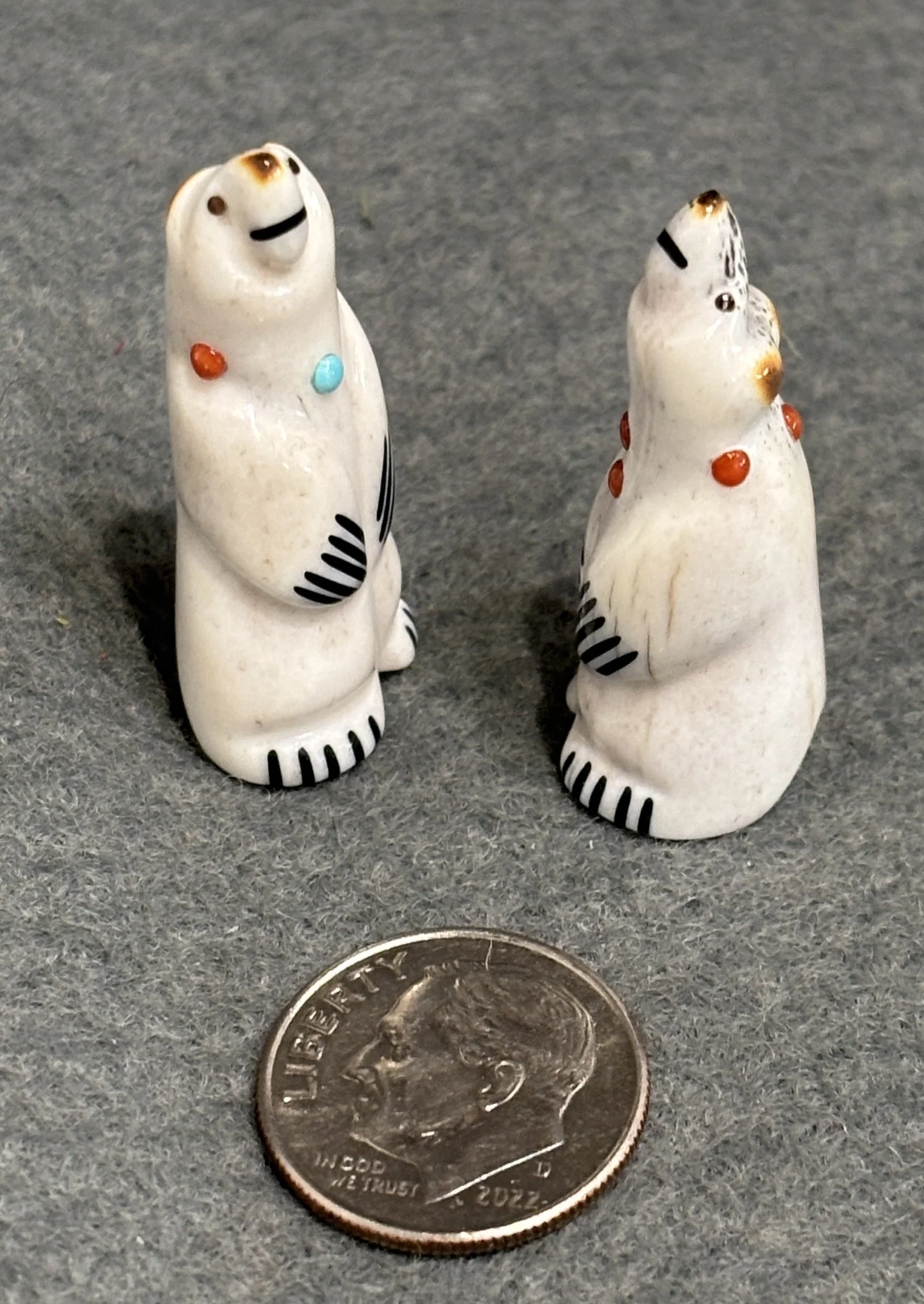 In the two photos at left is a Picasso marble bear by Carl Etsate. 2 inches from snout to tail and $45. An onyx coyote by James Panteah (son of Abby Quam-Panteah and Clayton Panteah). This one is 2.5 inches high and $75.