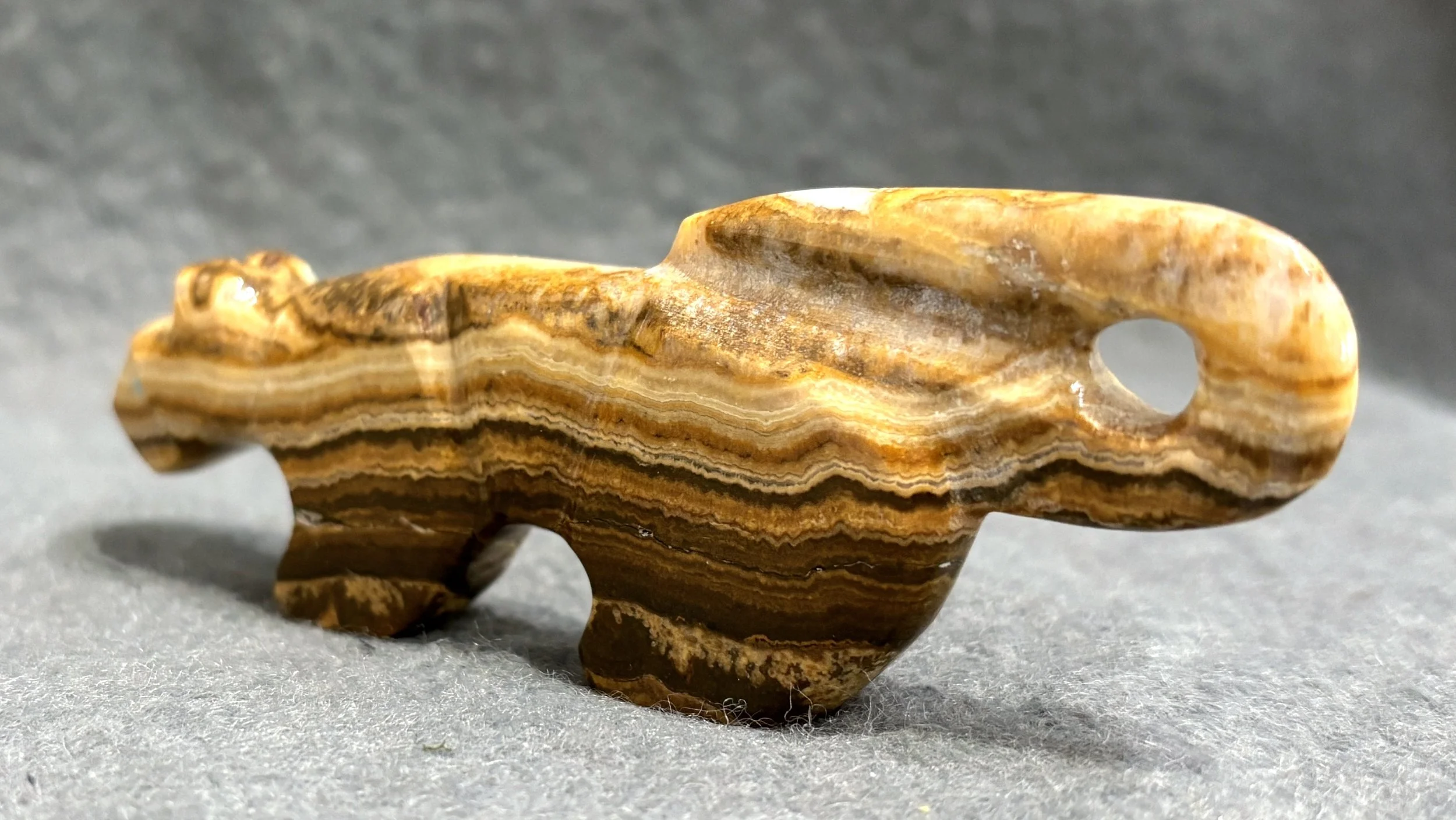 At left is a beautifully carved fossilized ivory musk ox by Inupiaq artist Norbert Thomas. This one is 2.25 inches long and $400. At right is a Picasso marble giraffe by Bernard Laselute, 1.75 inches high and $70.